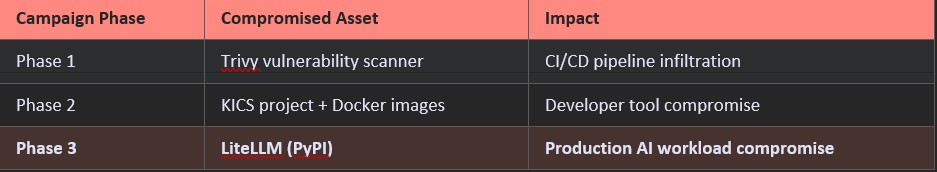 This was not an opportunistic smash-and-grab. It was a deliberate, multi-stage escalation by a threat group that has been quietly working its way up the software supply chain — from security scanners, to developer tools, and now directly into production AI workloads. If your organisation uses LiteLLM, the time to act is now.